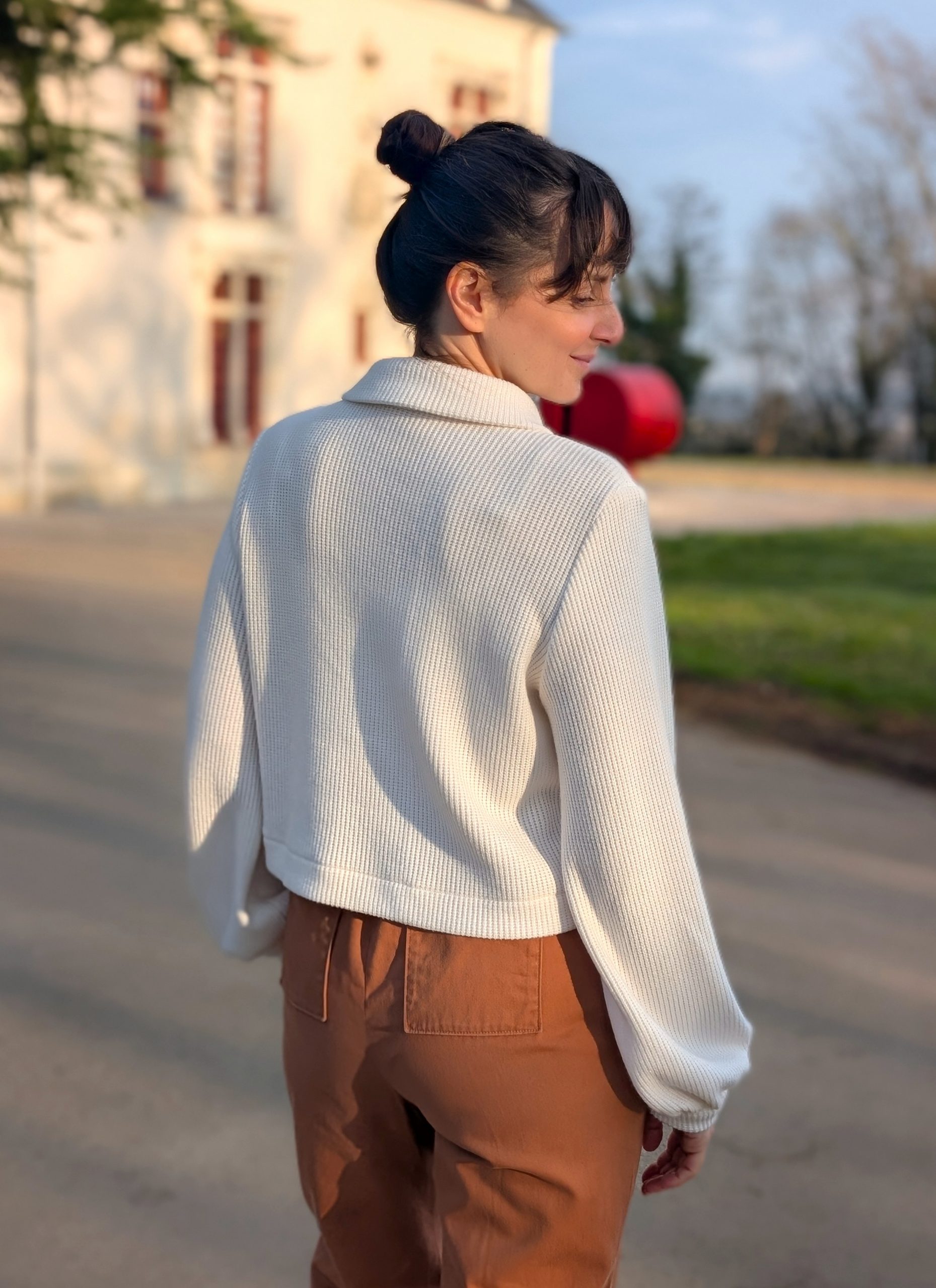 Le patron du gilet Naya revisite le sweat zippé dans une version épurée et élégante. Sur le devant, deux poches poitrine lui donne un petit air de veste. Son corsage plutôt court pourra être rallongé très facilement. Trois options sont proposées pour la finition de l’encolure : un col maille, rappelant les cols camionneurs, un col officier discret ou une petite capuche doublée. Pour les manches, deux options sont possibles : Une manche classique se finissant par un ourlet ou une manche bouffante sur le poignet se terminant par un bracelet de manche (optionnel). La manche classique peut également être coupée courte. Le style épuré du gilet NAYA se prête à toutes les combinaisons de couleurs, de matières et de motifs, alors amusez-vous !